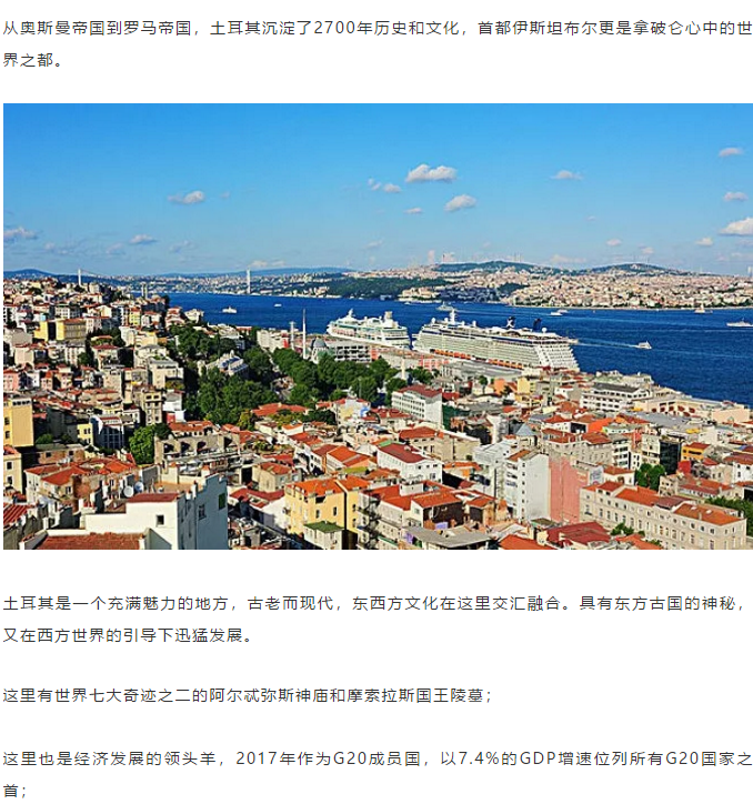 土耳其——世界移民的新中心 2019-08-19 移民 土耳其 世界 土耳其,一個神秘浪漫充滿傳奇色彩的地方。從世界地圖上看,土耳其橫跨歐亞兩洲,北臨黑海,南繞地中海,西接愛琴海,正是聯(lián)通亞歐的橋梁。
