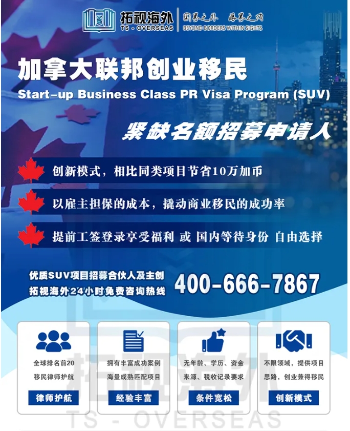 可以說(shuō),從項(xiàng)目的辦理過(guò)程來(lái)說(shuō),這是一個(gè)能夠?yàn)榧幽么髱ハ冗M(jìn)技術(shù),同時(shí)創(chuàng)造就業(yè)崗位,結(jié)果造福國(guó)民的優(yōu)質(zhì)移民項(xiàng)目,而加拿大只需要為項(xiàng)目的創(chuàng)始成員及家人提供永久居民身份,對(duì)于加拿大來(lái)說(shuō),SUV可以說(shuō)是“肯定盈利”型的移民項(xiàng)目。