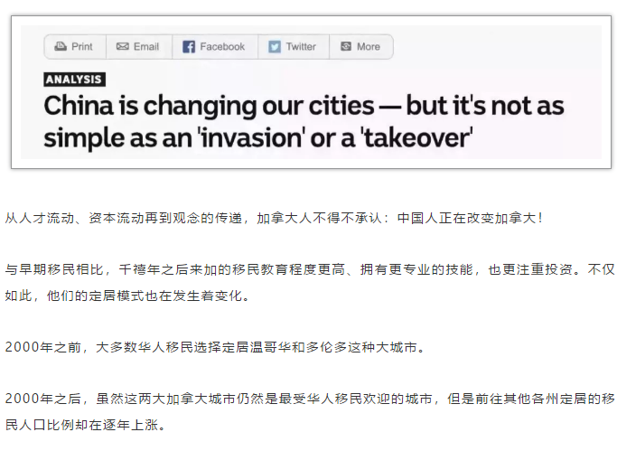 不久前,加拿大媒體曾發(fā)表過這樣一篇文章:“中國正在改變我們的城市,但并不是簡單的“入侵”或“接管”。