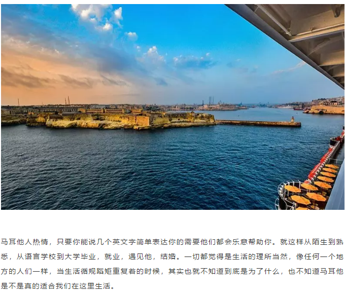 十三年前父親選擇了馬耳他作為我留學(xué)的國(guó)家, 在地球儀上我?guī)缀跽也坏健?span style="max-width: 100%; color: #000000; font-family: 微軟雅黑, Arial, sans-serif; box-sizing: border-box !important; word-wrap: break-word !important;">他”,對(duì)于同學(xué)和親友的問(wèn)題我也是含糊其辭說(shuō)是在意大利附近。直到踏上了這片國(guó)土,濃濃大海的味道幾乎當(dāng)你一下飛機(jī)就能聞到。