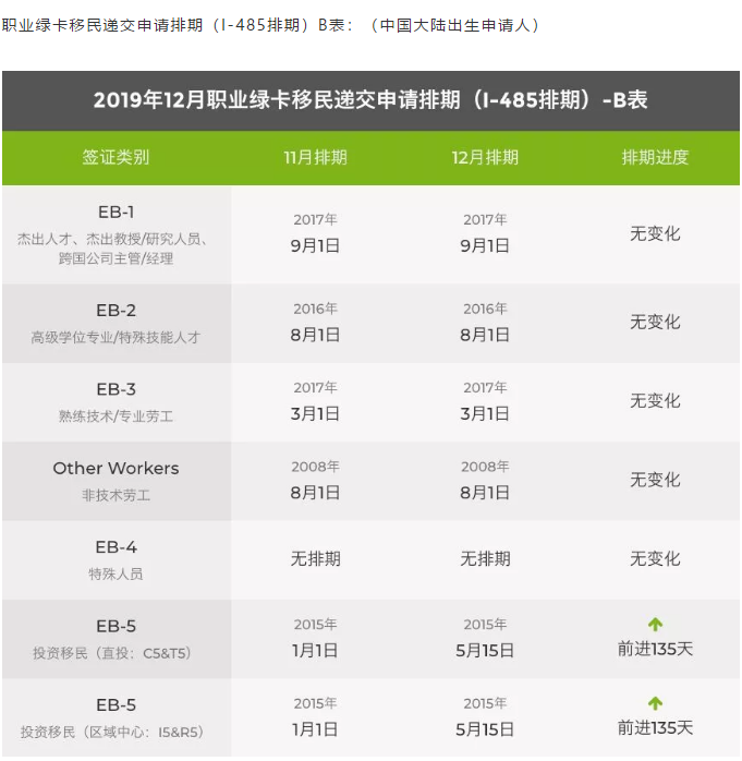 親屬移民還在緩慢挪動,不過EB-5投資移民表B倒是有個小前進(jìn),前進(jìn)幅度最多兩個多月。