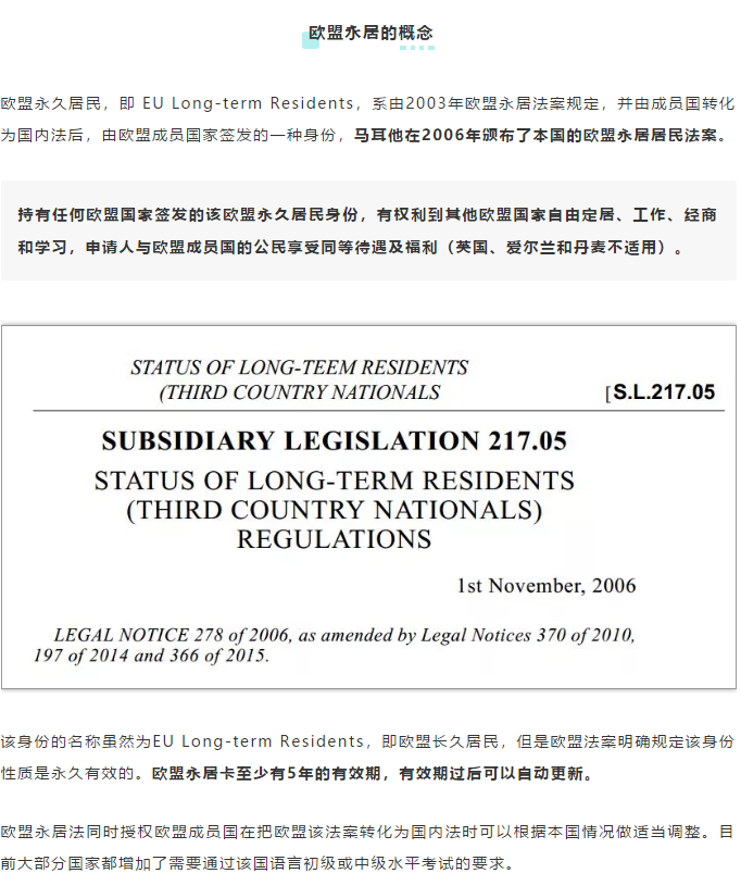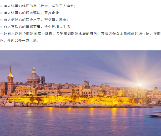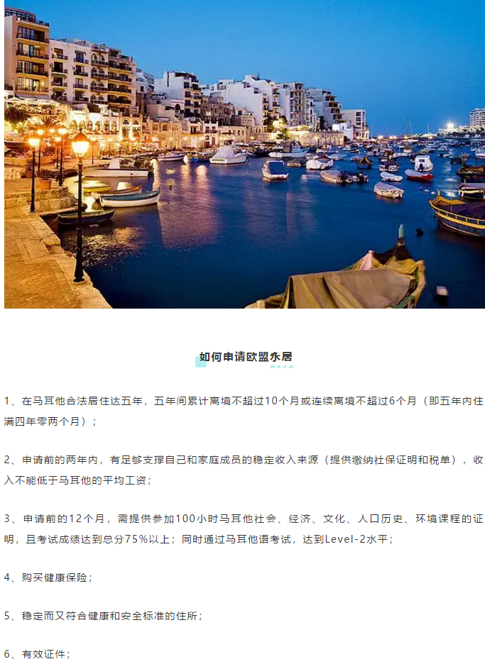 如何在馬耳他申請歐盟永居? 2019-08-15 馬耳他 歐盟 申請 馬耳他國債投資項(xiàng)目(英文簡稱“MRVP”)自推出以來,受到許多投資人的青睞,雖然馬耳他國土面積不大,但其各方面都有著獨(dú)特的魅力,也因此吸引了各國投資者的關(guān)注。