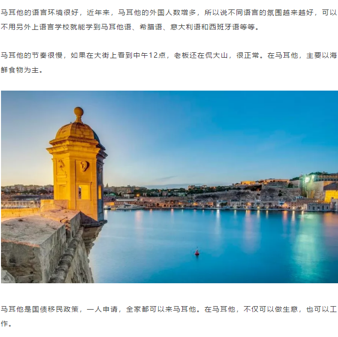 地中海風情的島國,風景迷人,經(jīng)濟發(fā)達,社會環(huán)境安定。
