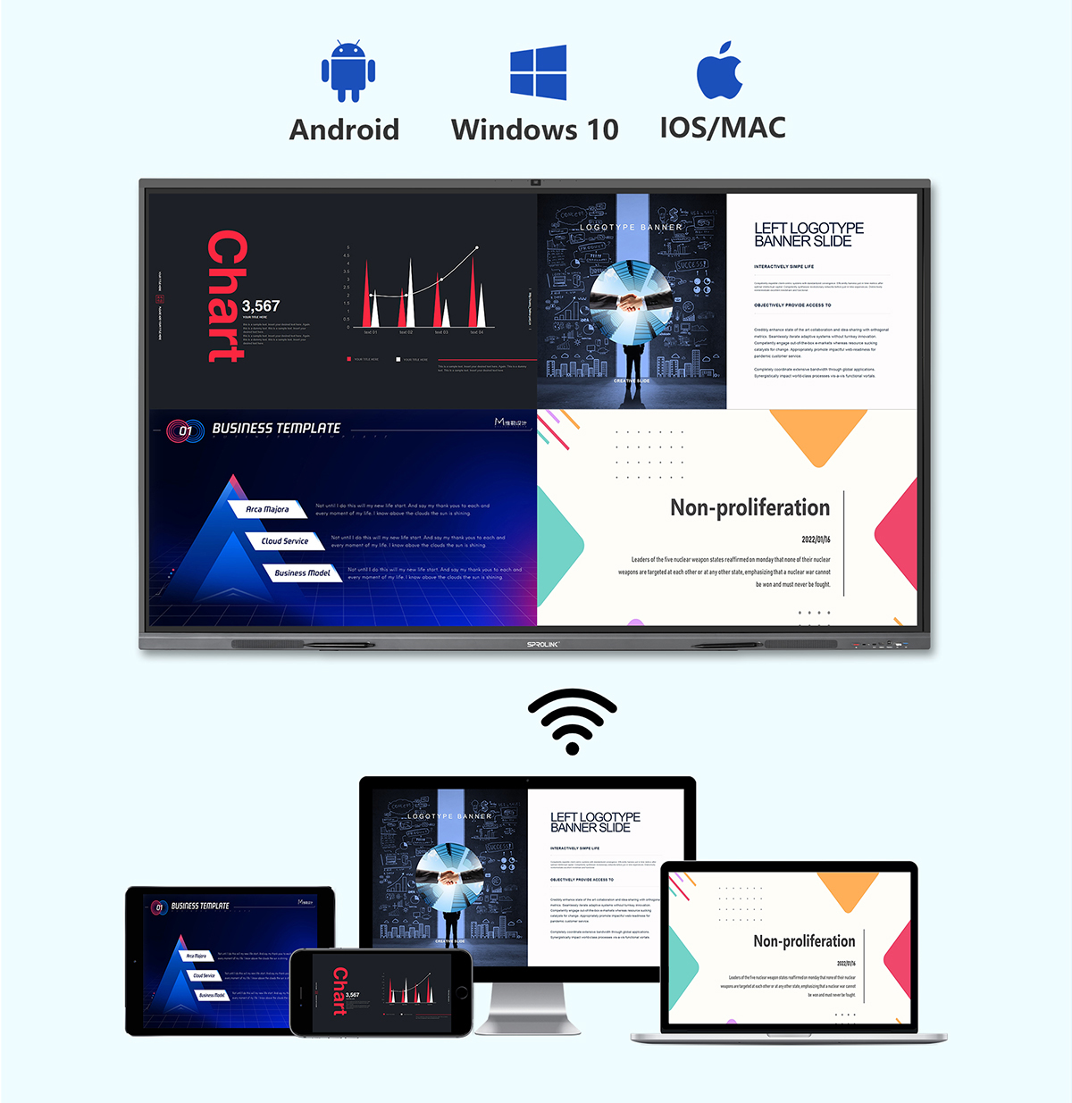 會(huì)議平板一體機(jī)最重要的一個(gè)優(yōu)點(diǎn),就是可以通過遠(yuǎn)程會(huì)議軟件和智能交互技術(shù)大大提高了會(huì)議的實(shí)時(shí)互動(dòng),當(dāng)企業(yè)跨地區(qū)或者居家辦公時(shí),通過SPROLINK會(huì)議平板能輕松實(shí)現(xiàn)屏幕共享,不受地域限制,便捷又高效。