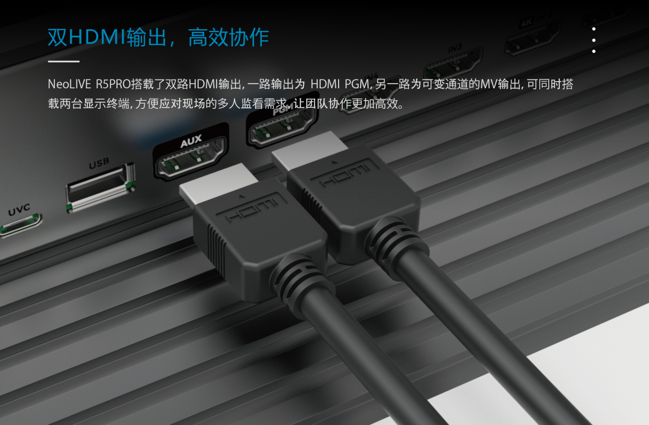 雙 HDMI 輸出支持兩屏監(jiān)看,導播和導演可各司其職,輕松掌控片場,提升團隊協(xié)作效率無論是大型活動還是小型直播間,都能實現(xiàn)精準監(jiān)控