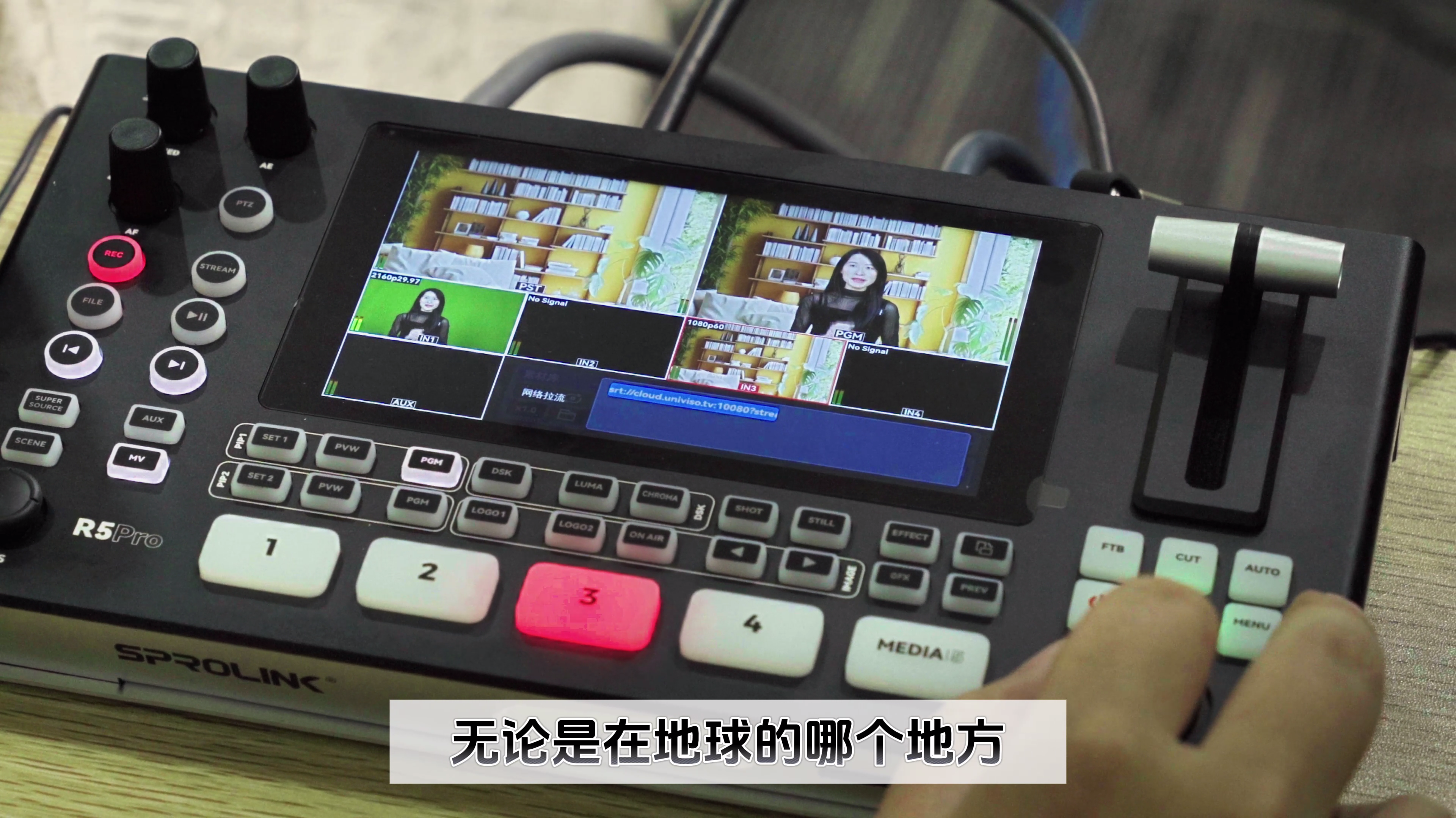 R5PRO 支持通過 RTMPSRT 協(xié)議實現(xiàn)遠程畫面拉流,允許用戶將遠端設(shè)備(如戶外運動相機DJI Pocket 3)的畫面實時接入導播臺這種功能打破了地域限制,特別適合多地點協(xié)作的直播場景