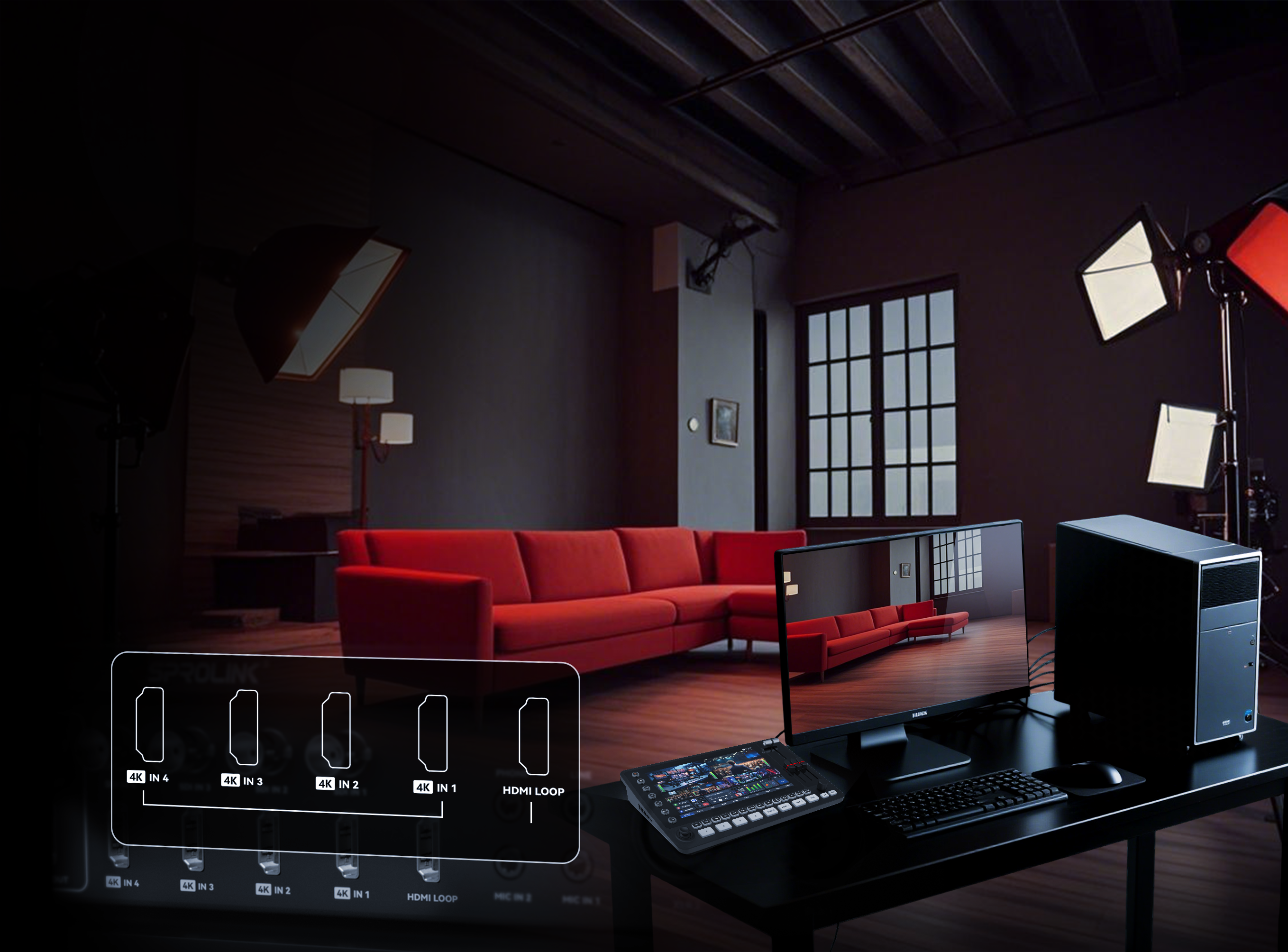 HDMI全接口支持4k信號輸入,并且外加1路4k畫面的環(huán)路輸出,可直接